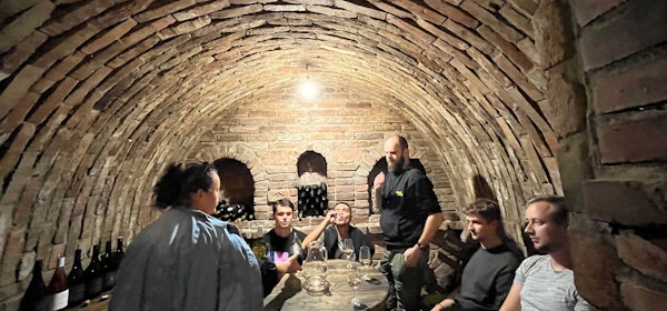 Ačkoliv bylo ten zářiový pátek několikátý den po sobě kolem 30ti stupňů, vydala se většina našeho týmu vlakem z Brna a ze Zlína na jih, do Moravské Nové Vsi. Uvítala nás paní majitelka, která se svým otcem pečuje nejen o vinici, ale i o chod penzionu a vinného sklepa. Jako první byla večeře, pak jsme se zastavili u vinohradu "za domem", kde nám Ivana povykládala něco o pěstování a sběru vína. Následovala ochutnávka 13ti vzorků převážně bílých, růžových a červených vín a zajímavá diskuze o gruzínském způsobu výroby vína v kvevri nádobách. Jedná se o způsob výroby vín starý už 8 tisíc let, kdy se pošlapané plody dají do nádob vyrobených z místní hlíny a po bouřlivém kvašení zakopají do země. Bývalo zvykem zakopat kvevri při narození dítěte a vykopat při jeho svatbě. Večer jsme se odebrali zpět na penzion, kde nás čekaly výtečné obložené talíře s místními pochutinami. Ještě jednou děkujeme a vinařství Tomanovi rozhodně doporučujeme k návstěvě!